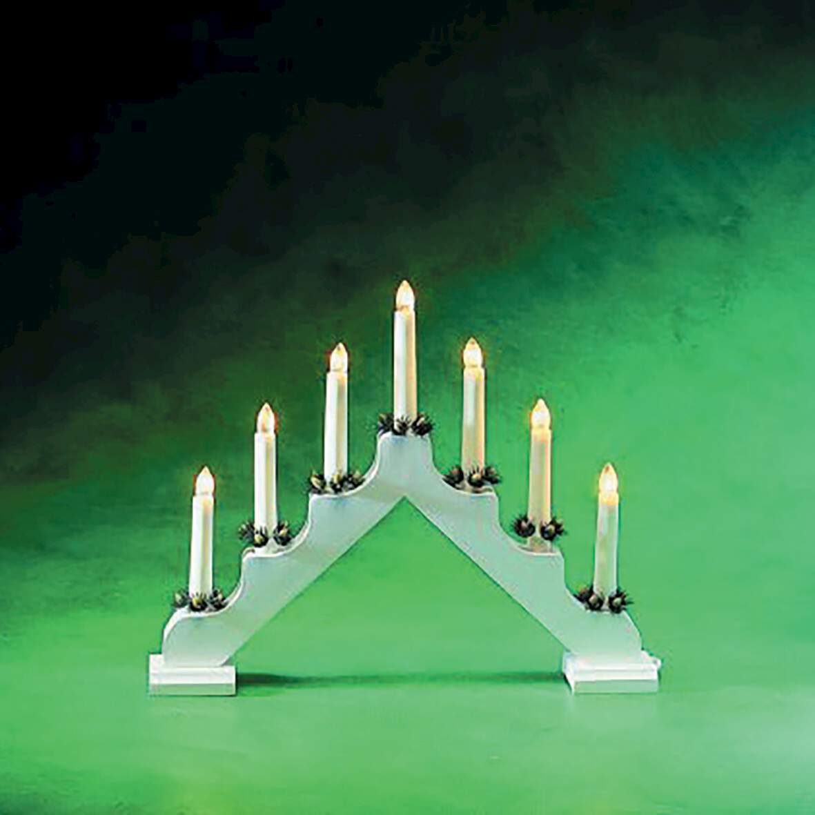 Holzleuchter weiß lackiert 7 klare Birnen, innen
