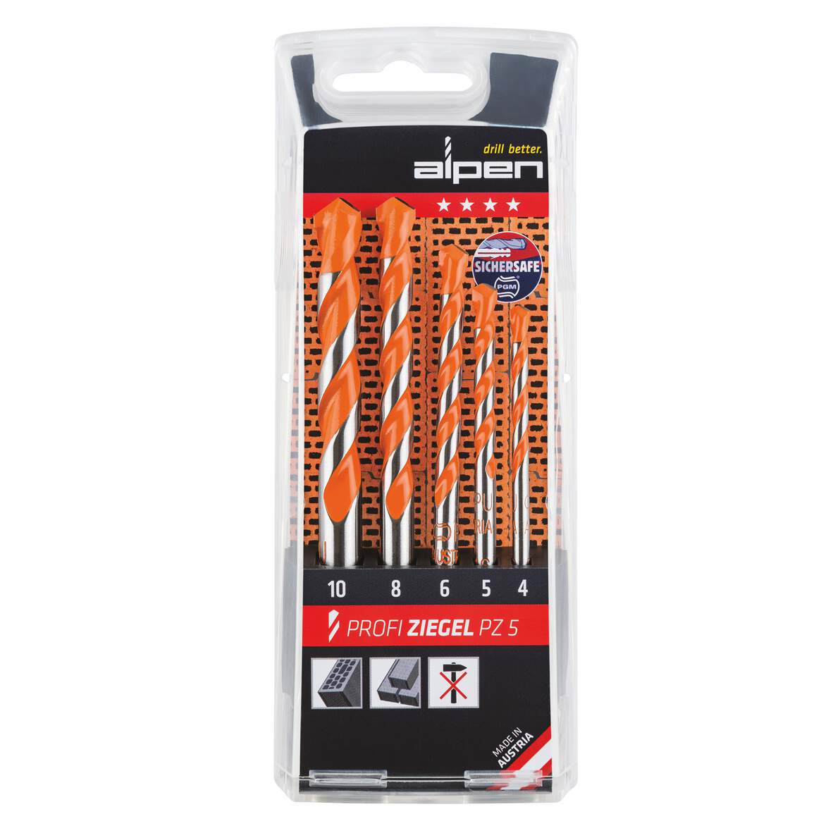 1202580 - Hohlziegelbohrerset PZ5 5tlg. DM 4,0-10,0mm 1202580 - Hohlziegelbohrerset PZ5 5tlg. DM 4,0-10,0mm