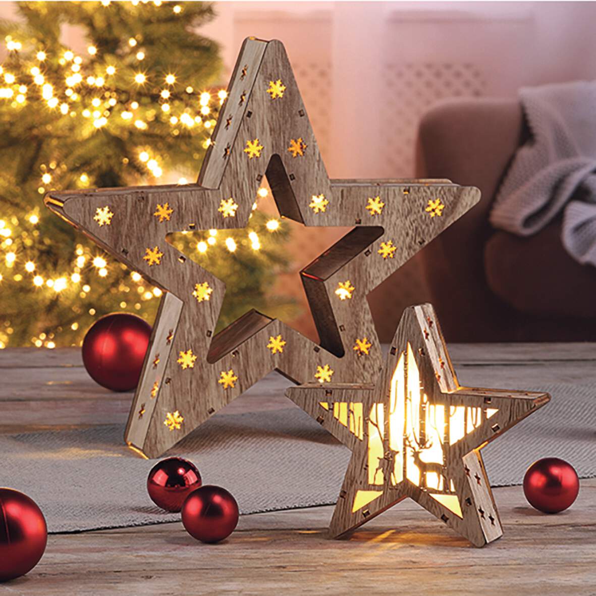 1285720 - Holzstern LED 2er Set 16 warmweiße LED`s