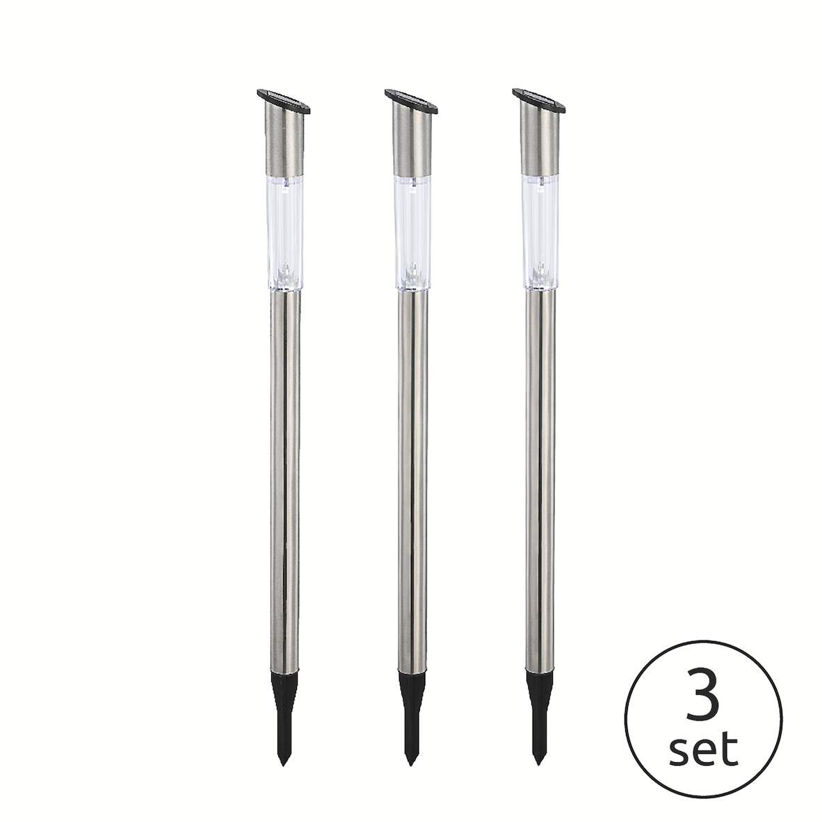 1304797 - Solarleuchten-Set Edelstahl 3 Stk., klar, H 700mm