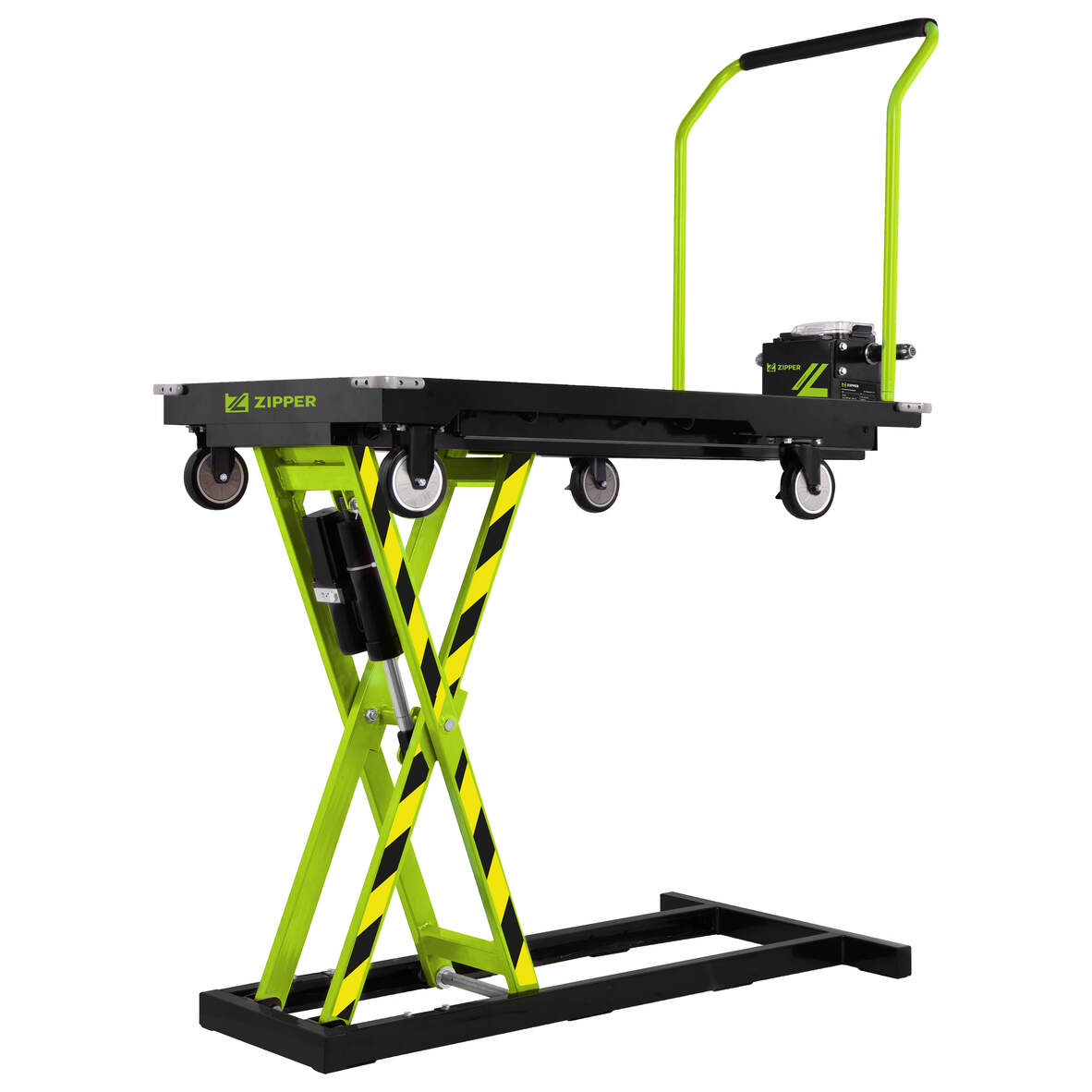 Der akkubetriebene Scherenhubwagen ZI-SHW200LIFT von ZIPPER unterstützt das Be- und Entladen durch eine anhebbare Plattform. Die Hubhöhe von ca. 1 m ermöglicht Arbeiten auf erhöhter Position, wodurch häufiges Bücken reduziert werden kann. Der integrierte Akku übernimmt die Hubbewegung (Auf- und Abwärts), während die Vor- und Rückwärtsbewegung manuell erfolgt. Der Hubwagen eignet sich für Anwendungen wie das Verladen auf Pritschenwagen, Anhänger oder Transporter sowie für innerbetriebliche Transportaufgaben in Lager, Produktion und Versand. Die Plattform kann auf eine Höhe von ca. 1 m angehoben und auf diesem Niveau für Arbeits- oder Ablagezwecke genutzt werden.