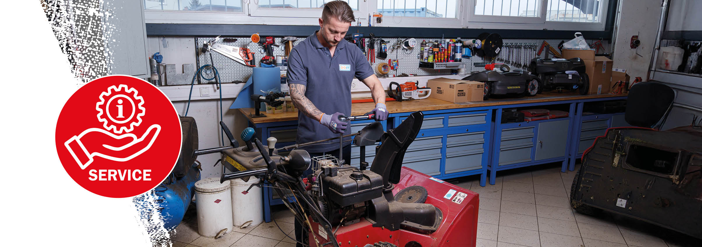 Ein regelmäßiges Service sorgt für eine lange Lebensdauer deiner Schneefräse! Lass' das Service in deinem LET´S DOIT Markt durchführen – wir erledigen dies unkompliziert und kostengünstig in unserer eigenen Werkstätte.